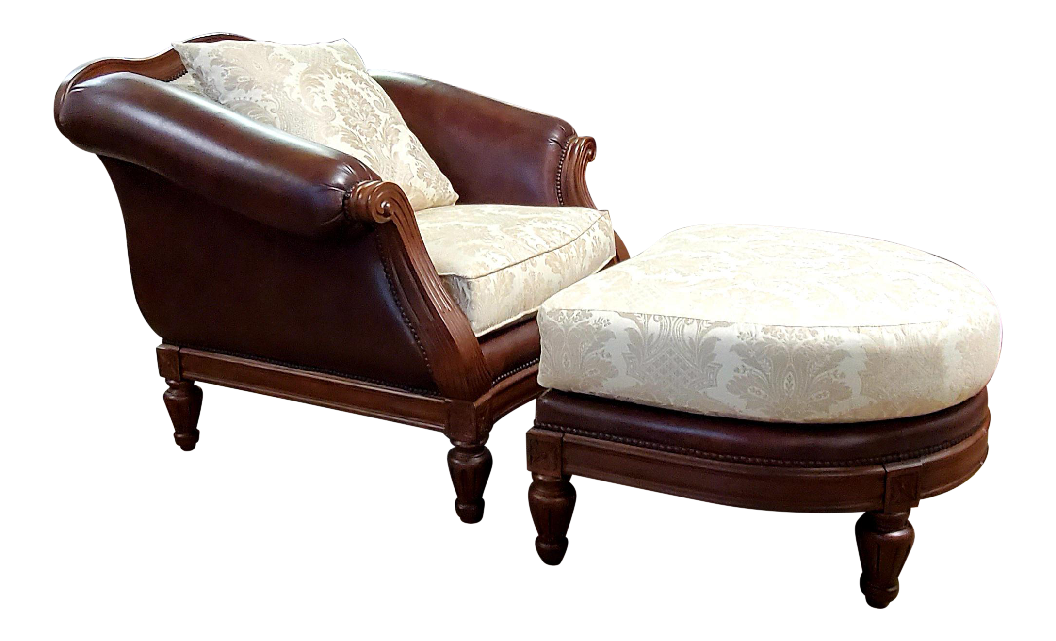 A simple row of nailhead trim adds color and contrast to the design, while the driftwood finished legs give it that final, chic touch.