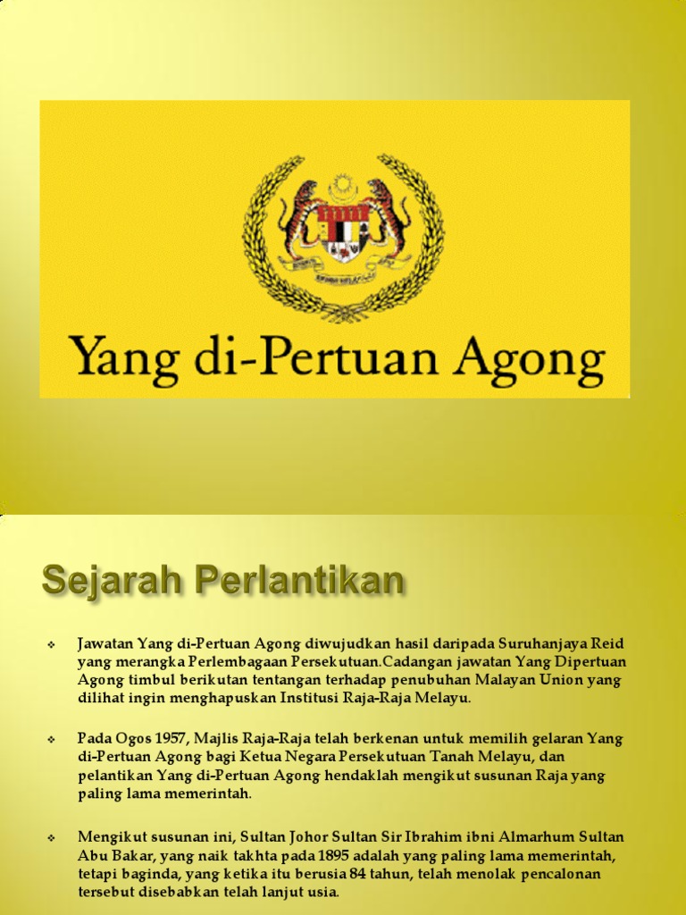 Memandangkan malaysia mengamalkan sistem raja berpelembagaan, peranan ydpa adalah sangat luas, namun tertakluk kepada perlembagaan. Selain itu, terkadang halnya dalam perdagangan luar negeri. Di negeri johor, gelaran rasmi bagi isteri yang suaminya bergelar dato' adalah datin dato' (nama suaminya) dan. Yang di pertuan agong dan raja permasuri agong keempat belas. Sebuah lembaga yang dimana terdapat di ibu kota jakarta yang dimana daerah hukumnya berada pada wilayah kekuasaan dari negara indonesia itu sendiri.