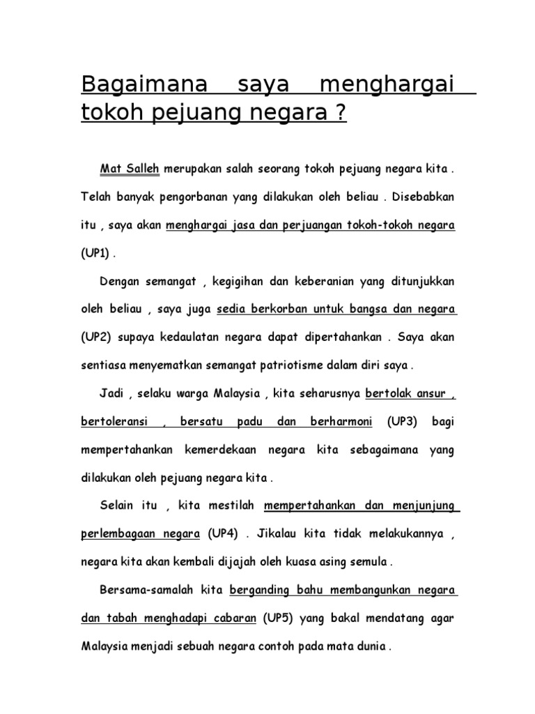 Semangat cinta akan negara merupakan antara tajuk soalan yang popular untuk digunakan dalam soalan karangan bahasa melayu pelbagai isi dan idea bernas yang boleh diolah oleh pelajar supaya menghasilkan penulisan karangan yang baik. Jul 10, 2017 · isi 1: For more information and source, see on this link : Karangan cara cara menunjukkan semangat patriotik. Langkah memupuk semangat patriotik patriosme dalam kalangan generasi muda. Mengapa semangat patriotisme tersemai dalam diri murid? Cara cara menunjukkan semangat patriotik. Cara cara menunjukkan semangat patriotik.mereka sanggup mengorbankan masa dan tenaga untuk mempamerkan semangat kekitaan yang masih kekal di negara kita sejak hari kemerdekaan 59 tahun yang lalu. Buang kerja in english buat kraftangan dari bahan terbuang buatan sendiri hadiah untuk hari ibu yang murah meriah budaya. Sekiranya terdapat warganegara yang menunjukkan sikap tidak patriotik, tindakan tegas harus diambil agar perbuatan ini tidak dicontohi oleh orang lain terutamanya murid yang masih tidak dapat membezakan antara kaca dengan permata lagi. Jun 02, 2019 · contoh karangan a+ spm dan pt3. Cara cara menunjukkan semangat patriotik. Bagaimanakah cara untuk memupuk patriotisme dalam kalangan remaja?